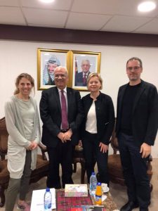 Aber auch in den Palästinensischen Autonomiegebieten nimmt inzwischen trotz Repressionen durch die Autonomiebehörde die Skala der Meinungen spürbar zu. Wenig überraschend erzählte Dr. Saeb Erekat, der Chefunterhändler der Palästinensischen Autonomiebehörde und Generalsekretär der PLO uns nichts Neues. Doch ein Lunch mit jungen Palästinenser beleuchtete die verschiedenen Defizite der palästinensischen Gesellschaft (Frauen- und Menschenrechte), zeigte aber auch die vermeintlichen Grenzen der Wirtschaft aufgrund der Situation. Die israelische Besatzung ist schnell als Grund genannt; In einem Gespräch mit UNSCO, des Sonderkoordinators der UN für den Nahost-Friedensprozess, wurden diese Vorwürfe aber zerschlagen. UNSCO informierte die Delegation unter anderem über die Hintergründe der desolaten finanziellen Lage der Palästinensischen Autonomiebehörde. Erfreulicheres konnte uns Nada Majdalani, die palästinensische Direktorin der israelisch-palästinensisch-jordanischen Umweltorganisation EcoPeace Middle East berichten. In zahlreichen grenzübergreifenden Projekten fördert EcoPeace Middle East zivilgesellschaftliches Engagement für die Umwelt. Deren israelischer Direktor Gidon Bromberg war im Februar Redner bei zwei NAFFO-Veranstaltungen in München und Berlin.